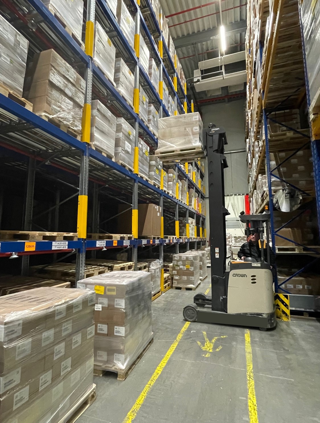 Afin de créer une capacité supplémentaire sans agrandir le site , Movianto a démonté les rayonnages à grande hauteur conventionnels et investit dans plusieurs nouveaux systèmes de rayonnages push-back. Ce type de rayonnage permet d’empiler jusqu’à cinq palettes les unes derrière les autres dans un compartiment. Elles sont stockées sur un convoyeur à rouleaux légèrement incliné, de sorte qu’elles avancent de manière autonome par simple gravité, où elles peuvent être prises ou poussées à l’aide d’un chariot élévateur. À Neunkirchen, le système de rayonnage compte plus de 50 baies, chacune pouvant accueillir cinq palettes en profondeur et sept palettes en hauteur. « Grâce au système coulissant qui élimine les allées intermédiaires, nous pouvons désormais utiliser l’espace existant de manière plus efficace. Le taux d’utilisation de l’espace dans cette partie de l’entrepôt frigorifique a augmenté de 50 %. »